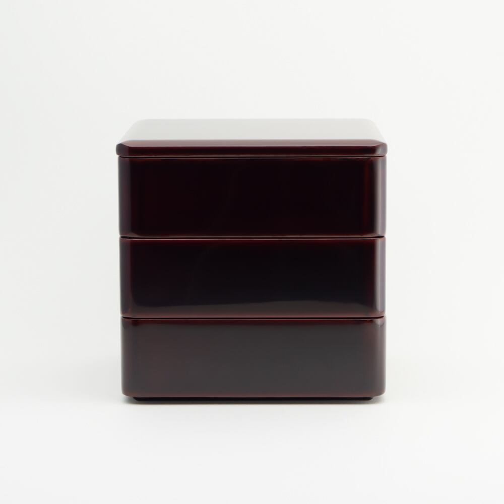 昔ながらの形状で、外側は奥深い溜塗、内側を朱塗で仕上げた重箱。