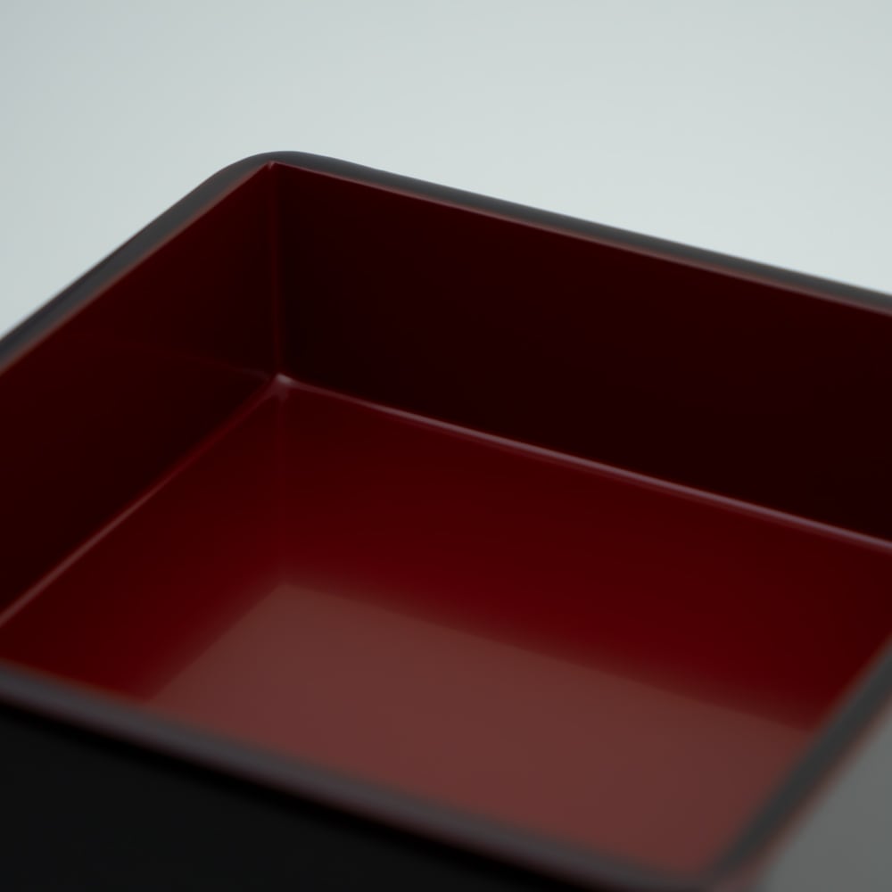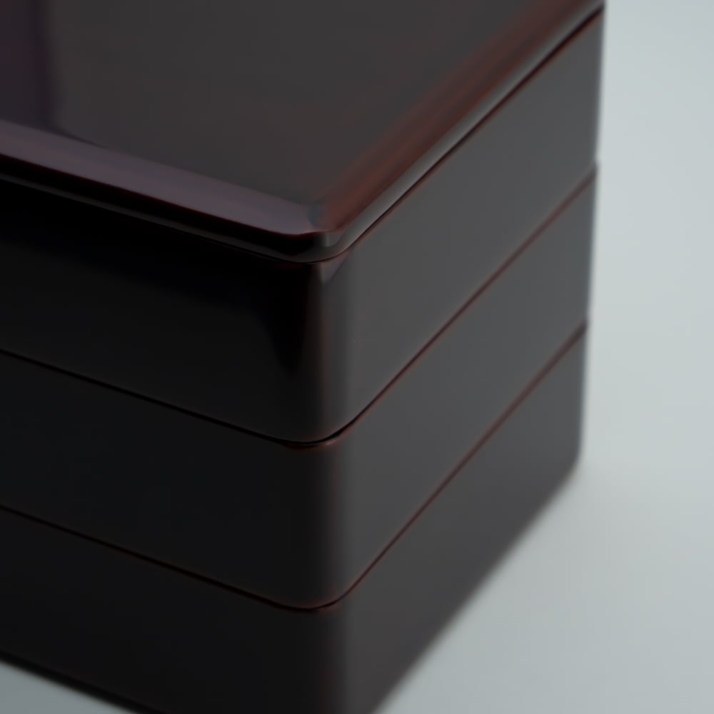 昔ながらの形状で、外側は奥深い溜塗、内側を朱塗で仕上げた重箱。